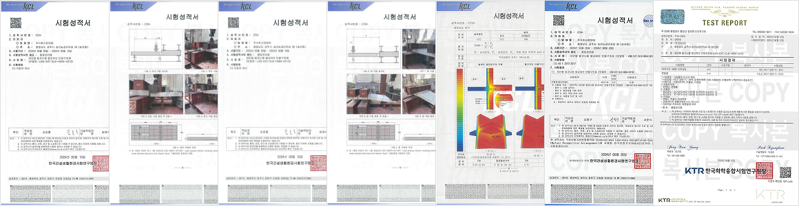 4. 공인된 내화 성능 : KS F 2257(건축부재의 내화 시험방법) 기준에 따라 2시간 내화 성능을 확보하였습니다.