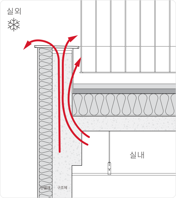 단열재의 연속 시공을 위해 구조체 전체를 감싸는 번거롭고 복잡한 단열 공사 대신, 파라펫 구조체 하부에 열교차단재를 적용하면 간편하고 경제적인 단열 시공이 가능합니다.