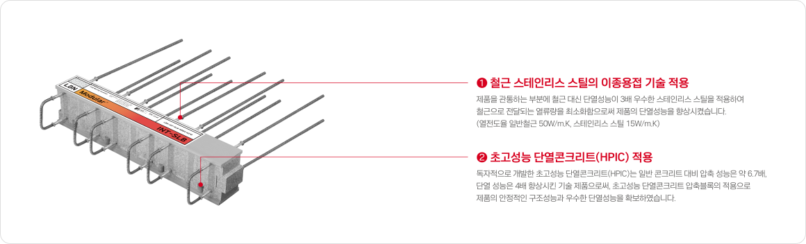 슬래브용 제품을 포함한 LBN Modular 전 제품에는, 구조적 안전성과 뛰어난 단열 성능을 구현하기 위해 다음의 신기술이 적용되어 있습니다.